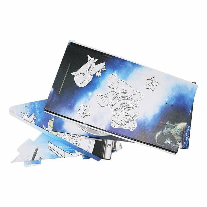 The cardboard playhouse features cool, colourful printed space images to complement the space-inspired illustrations, all ready to be coloured in with pencils, pens or paints. It will make for a lovely family activity. Once built and coloured, kids can enjoy endless hours of play!