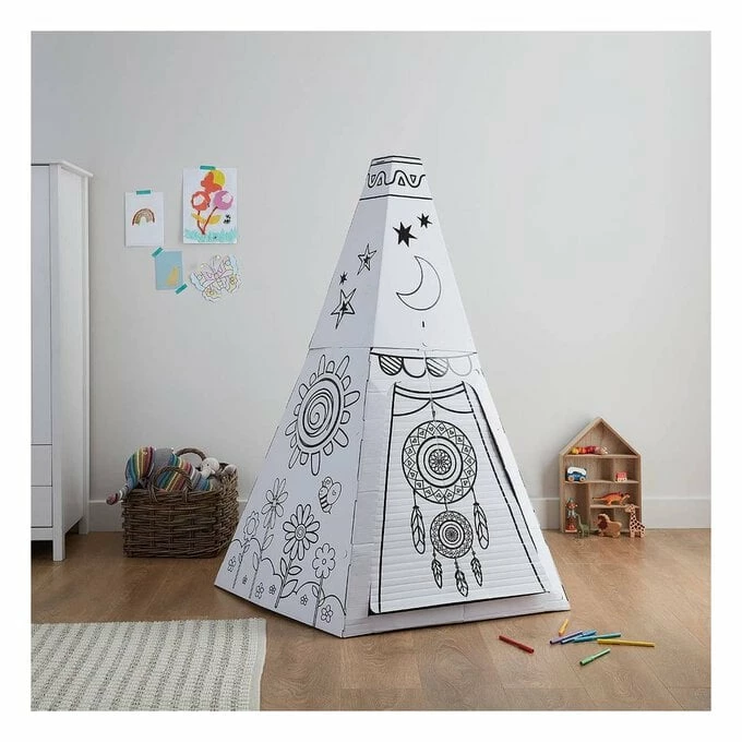 Once complete, kids can climb into their little hideaway. It’ll be great for little ones playing together, bringing them hours of fun even after the wigwam is all coloured in.